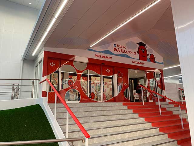 明太子で有名な「かねふく」が運営する体験型テーマパーク。大人も子どもも楽しめる無料工場見学や試食コーナー、限定商品が並ぶ直売所が魅力です。
